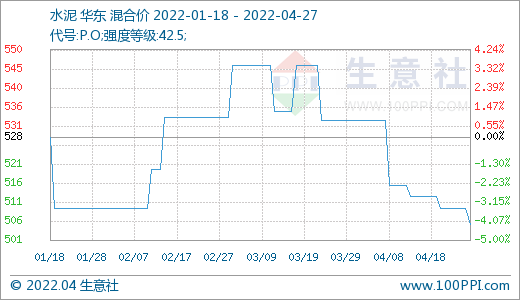 近期華東地區(qū)水泥價(jià)格以小幅下跌為主,江蘇地區(qū),受雨水天氣影響,4月25日左右江蘇部分地區(qū)部分水泥廠家各品種水泥價(jià)格下調(diào),跌幅在20-30元/噸。受到公共安全事件的影響,各地管控加嚴(yán),工地施工進(jìn)度放緩,市場需求持續(xù)不佳,水泥價(jià)格整體偏下運(yùn)行。